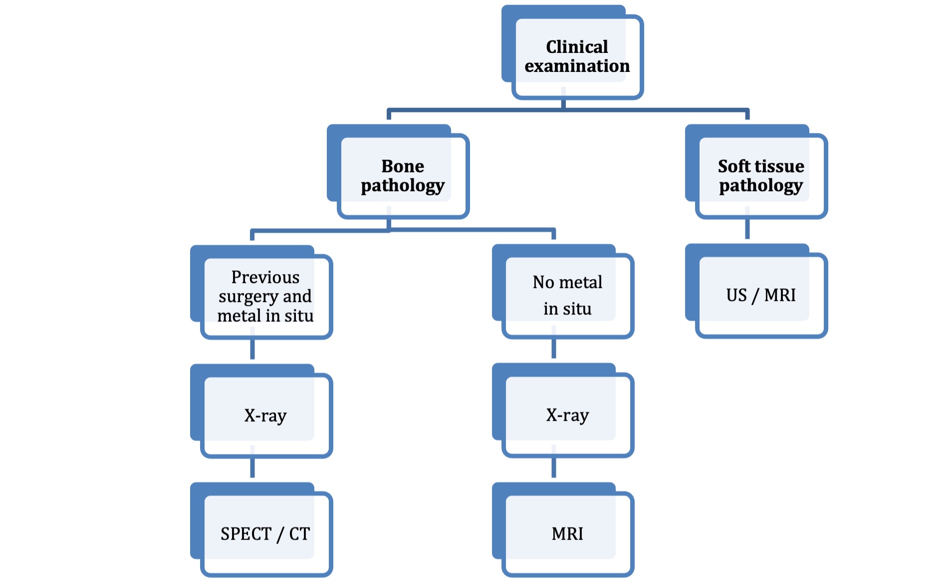 US plays an important role if patients present with symptoms localised to a particular area of the foot. If symptoms are more diffuse, MRI may be more appropriate for more complete assessment and, in particular, to assess the bone and joint surfaces.