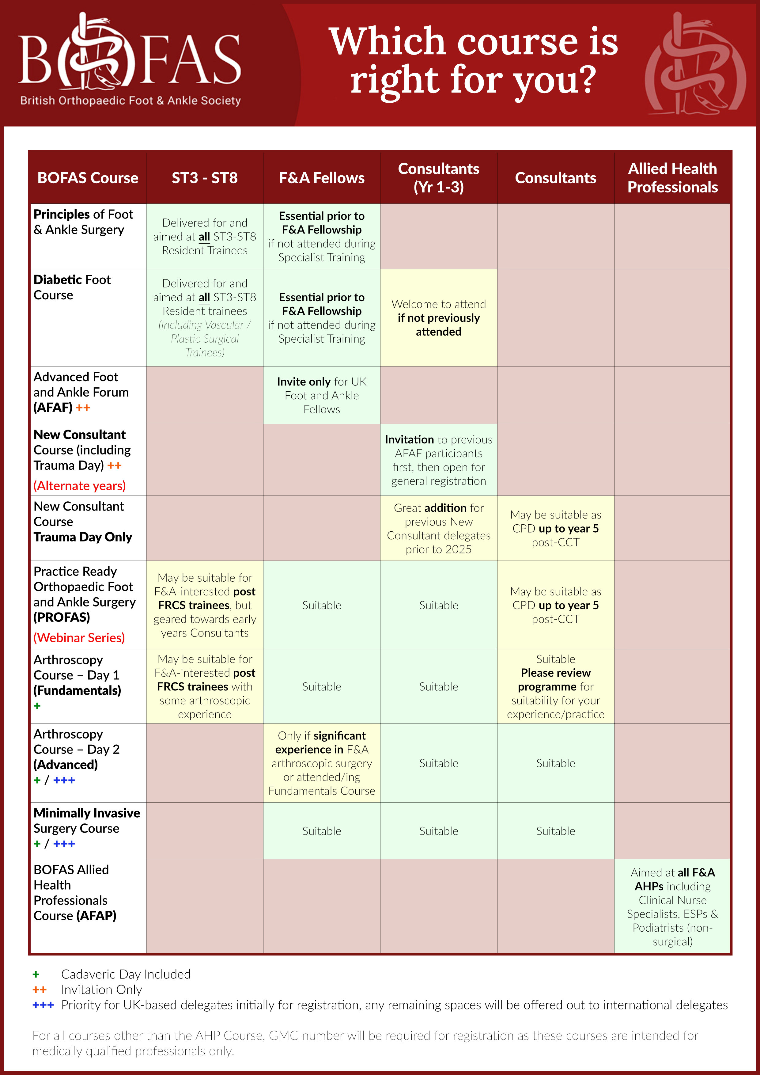 Should you have any queries about which course to register for or suitability, please email: education@bofas.org.uk.