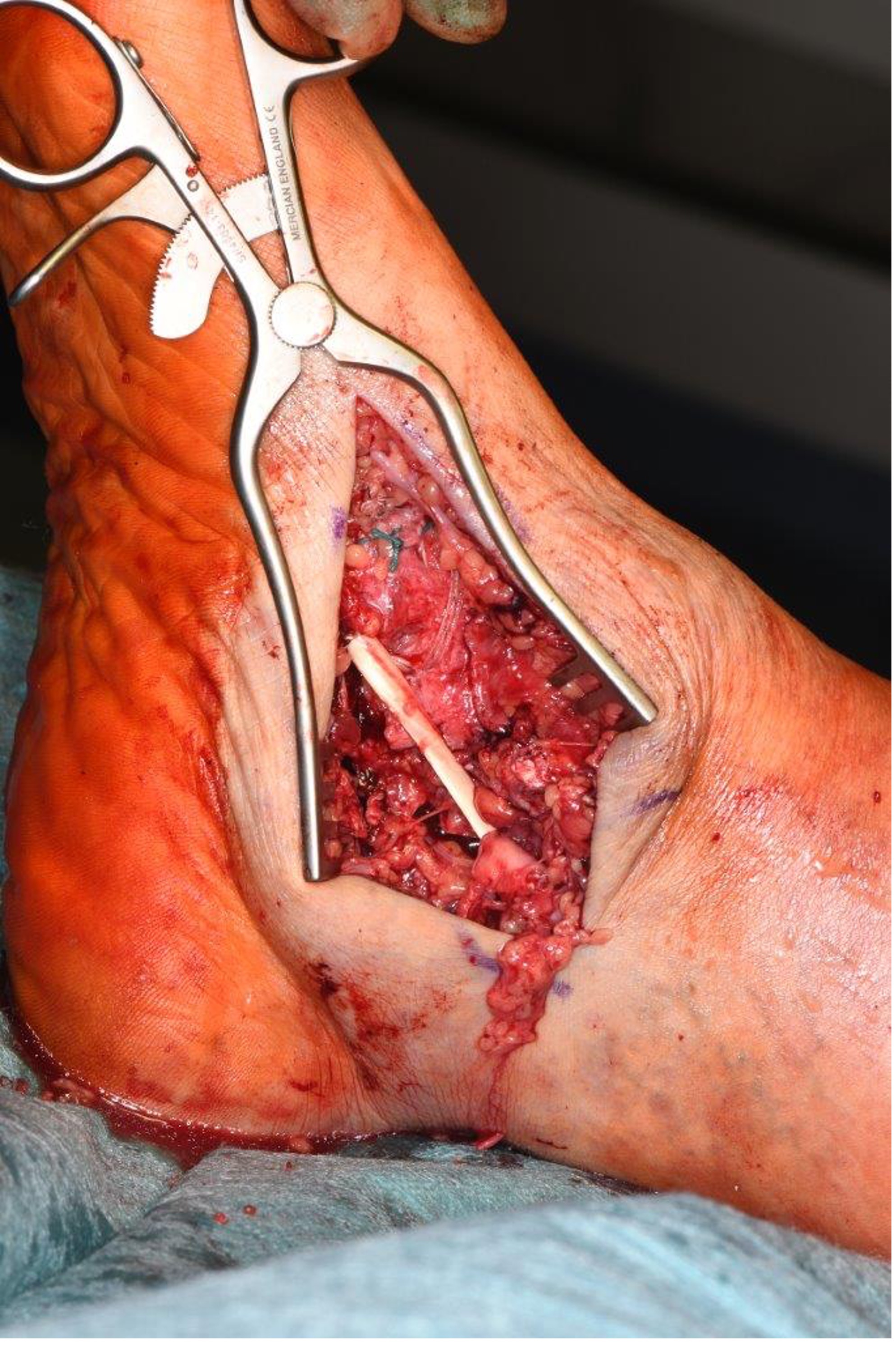 Figure 9: FDL transfer into navicular bone after tibialis posterior debridement