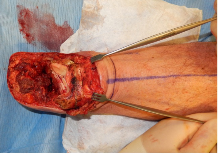 - Dorsiflex the remaining forefoot to identify the flexor tendons and cut these under tension