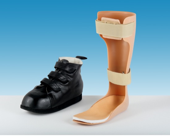 Figure 3: Scotchcast orthosis with short shoe and total contact insole