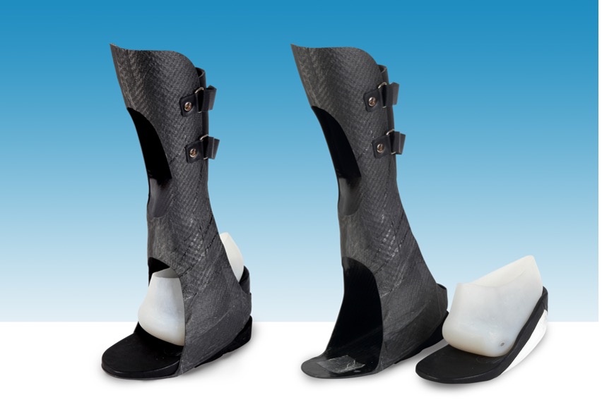 - Ankle-foot orthoses with a built-in moulded insole; carbon-fibre plate with posterior opening door (Figure 2)