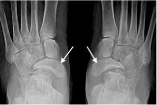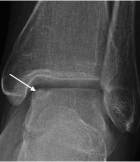 Osteochondritis dissecans medial talar dome (arrow)