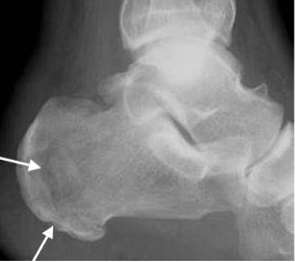 - The posterior calcaneal apophysis appears irregular and sclerotic (although these findings can be normal).