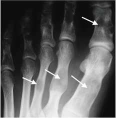 Multiple enchondromas (arrows) in Ollier’s disease