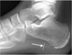 - Fluffy new bone formation and erosions may occur at the calcaneal insertions of the Achilles and plantar fascia